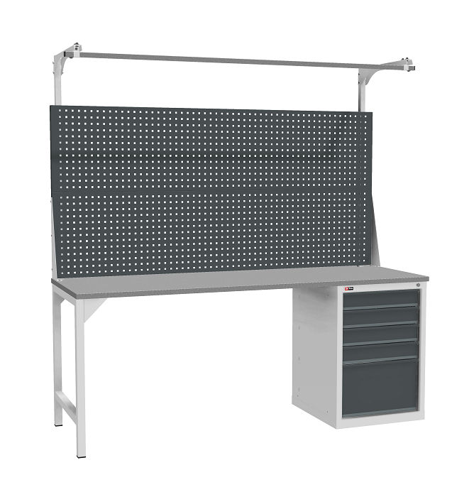 Цвет верстака: серый Ral 7038, лицевая панель ящиков/дверей антрацит Ral 7016. Тип покрытия: эпоксидная порошковая краска. Поставляется в разобранном виде