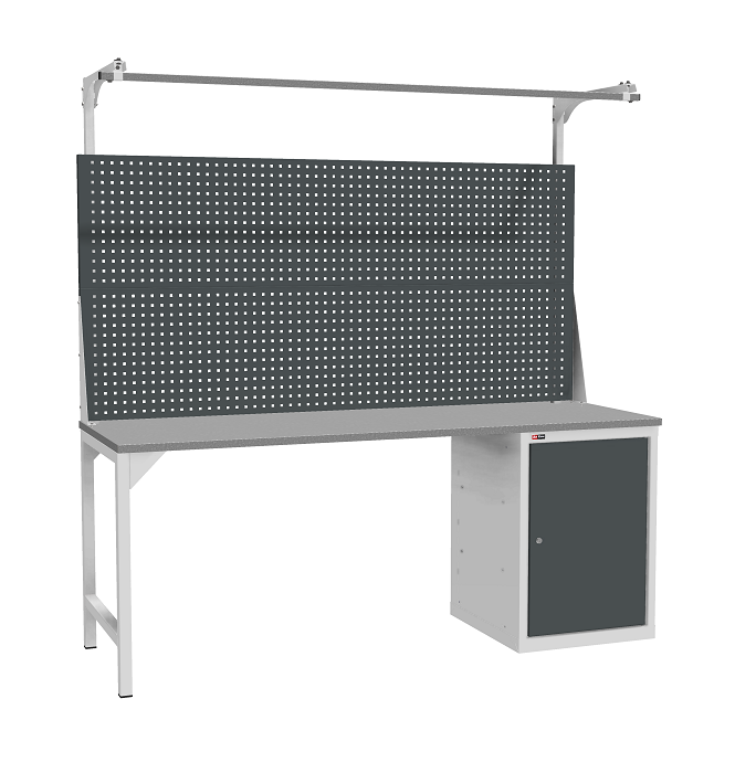 В комплектацию верстака входит: столешница ВЛ-К 200, одна опора ВЛ-К, косынки для опоры ВЛ-К, тумба ВЛ-К-010, два перфорированных экрана ВЛ-К.